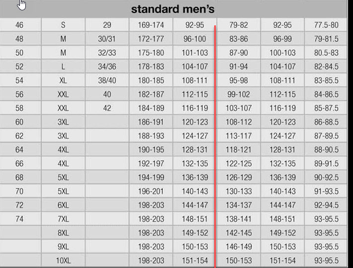 S, M, L, XL, XXL, 3XL, 4XL, 5XL